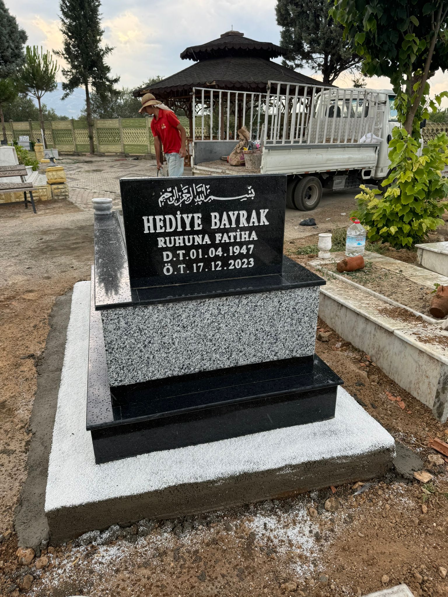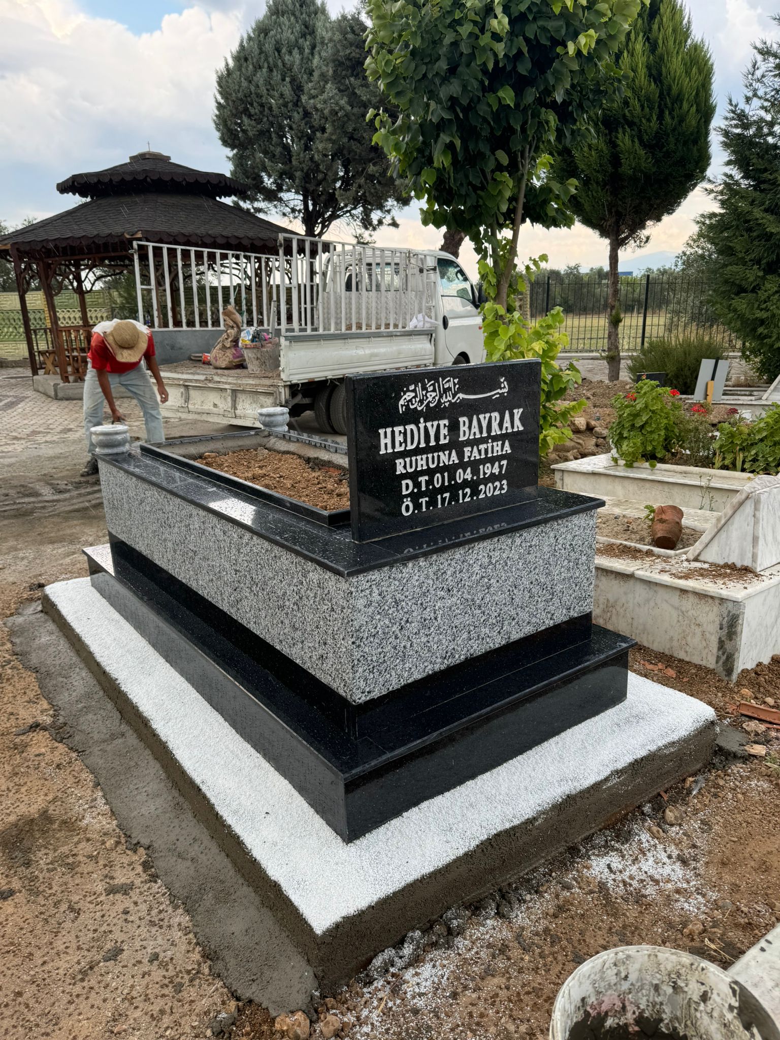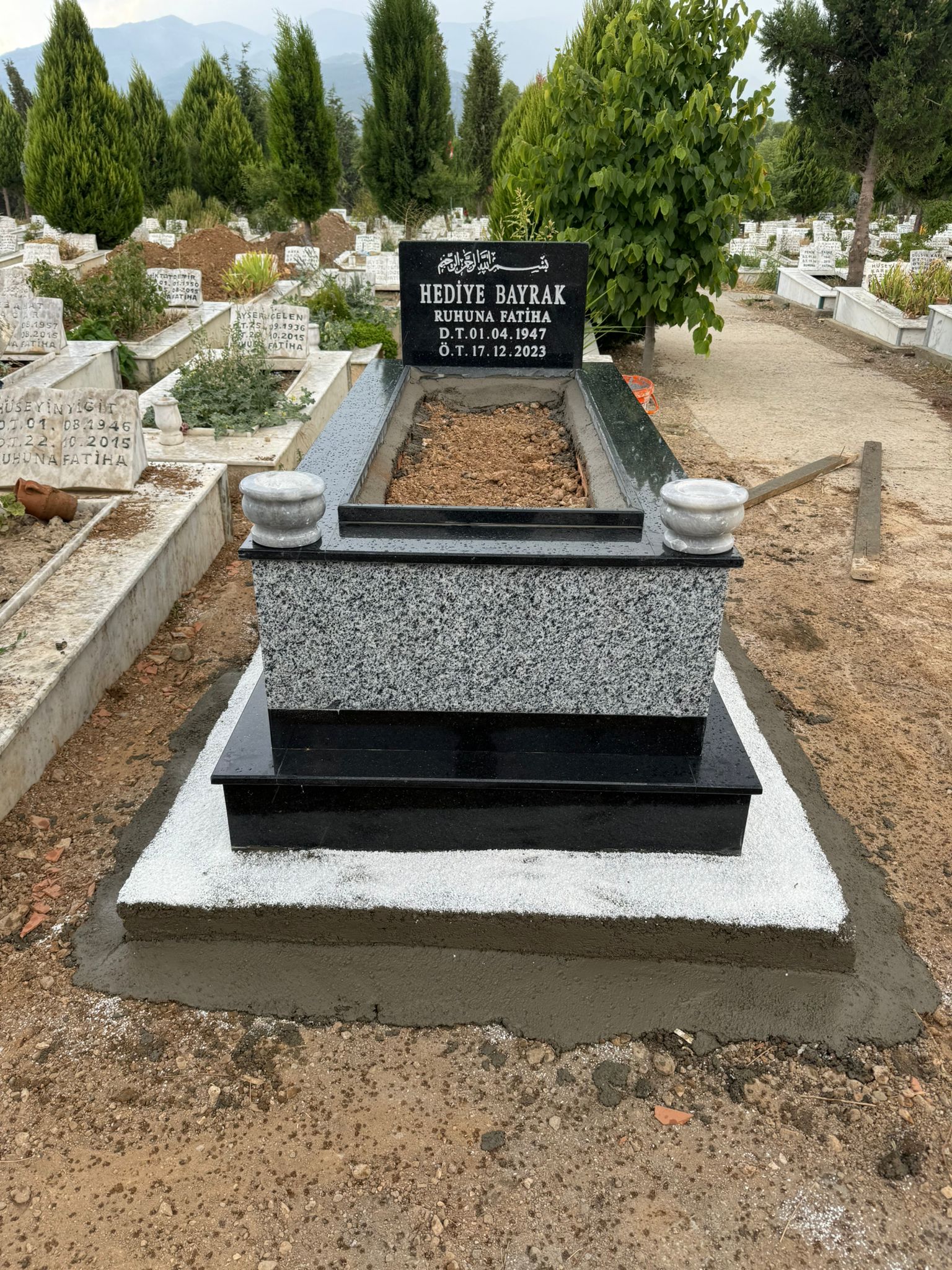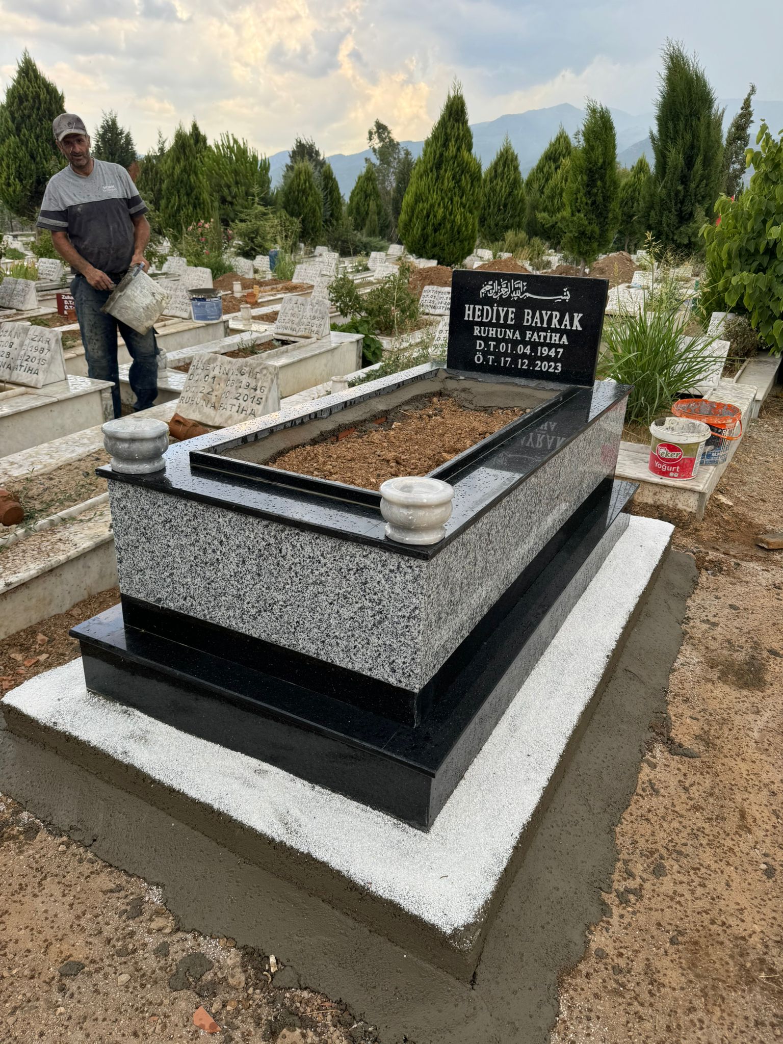 Cinsi: granit Yükseklik: 77 cm 10 cm beton 67 cm